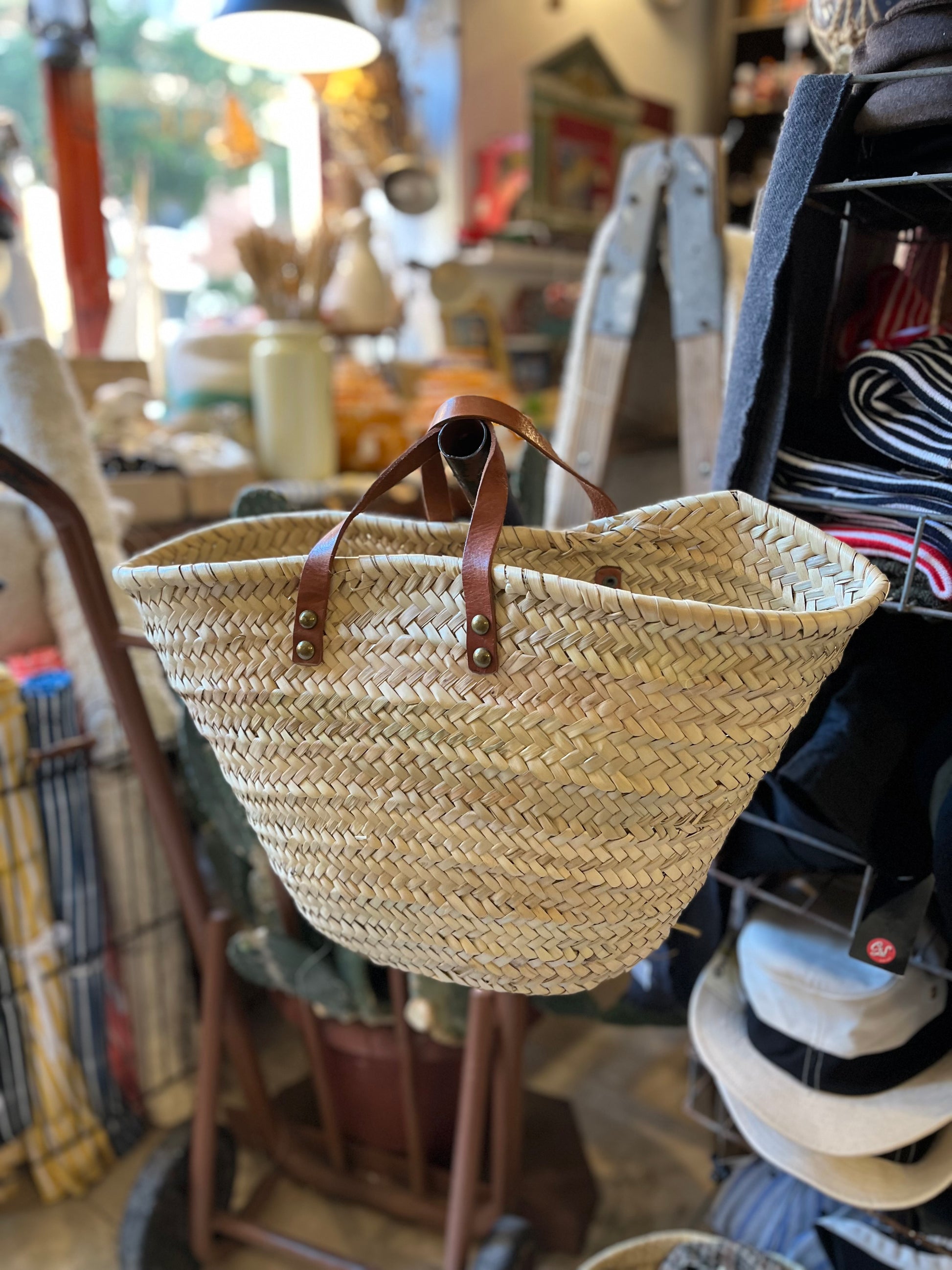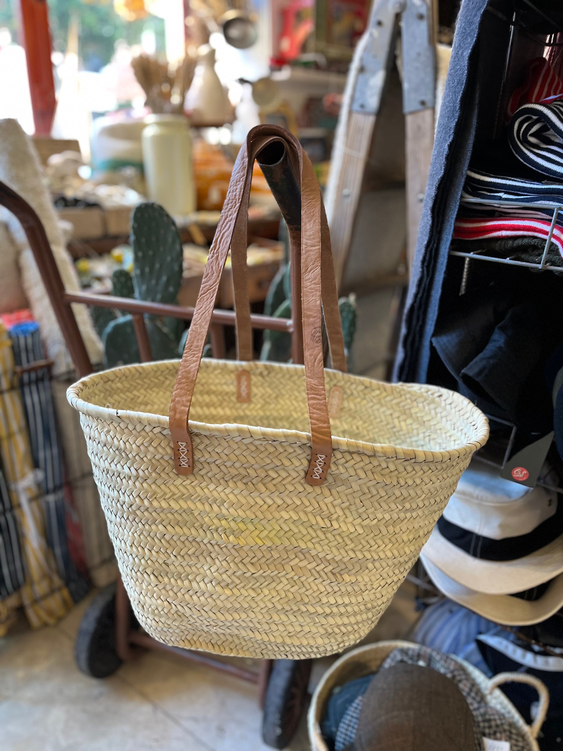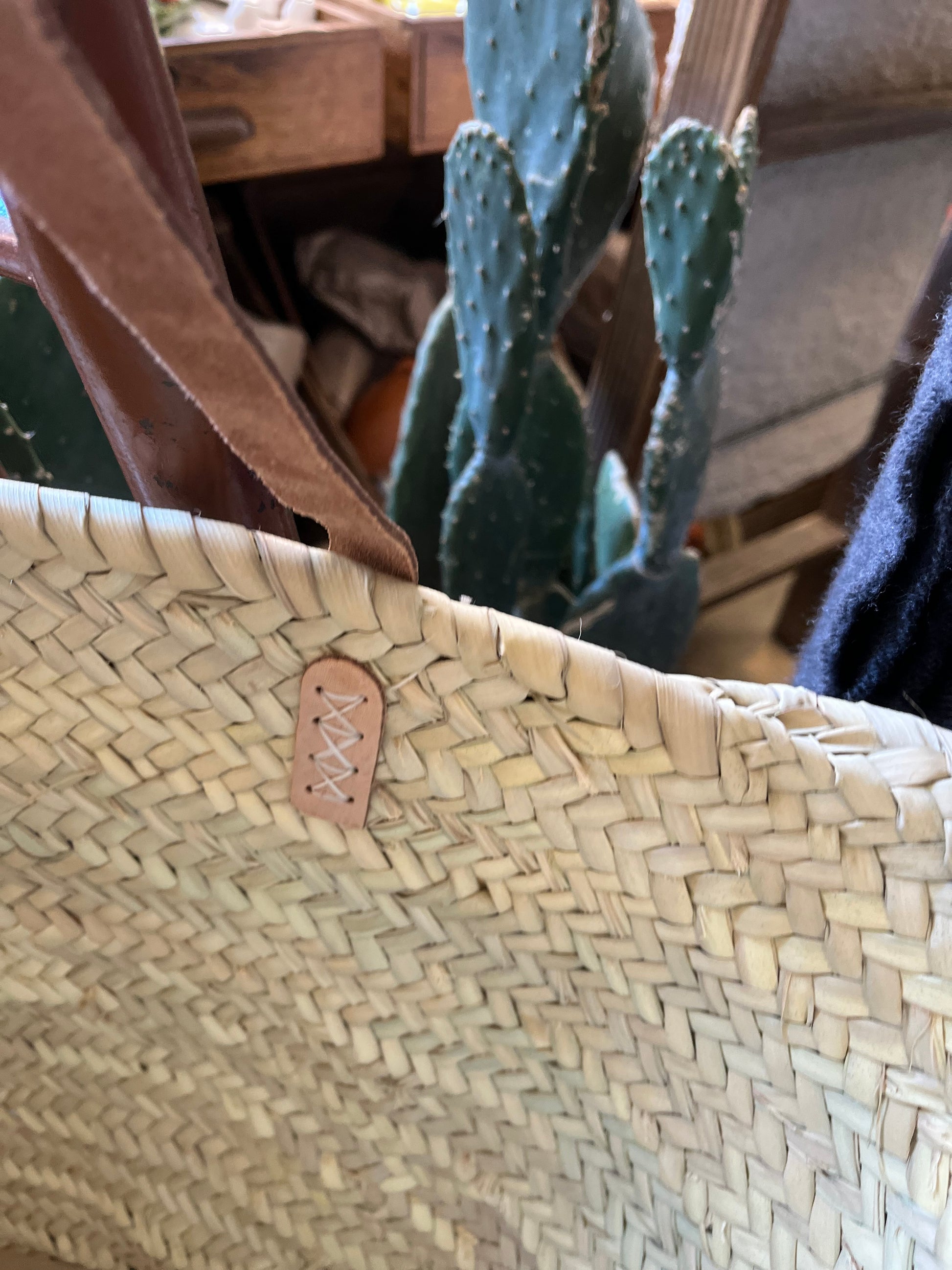 Capazo de enea (fibra natural ) Capazo de enea natural con asa de cuero natural larga o corta. A elegir en selección. Las asas al igual que los remaches suelen ser diferentes en cada partida que recibimos. La altura suele variar entre 30 cm y 33 cm solo en la parte de enea al ser un producto fabricado (trenzado ) a mano.